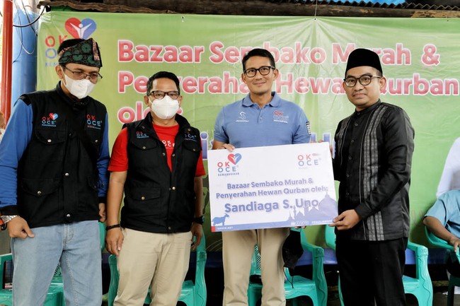 Menteri Pariwisata dan Ekonomi Kreatif Sandiaga Uno bersama OK OCE menggelar bazar sembako murah di kawasan Kuningan, Jakarta Selatan hari ini. Founder OK OCE ini pun mengapresiasi upaya OK OCE yang turut memberikan kebermanfaatan bagi masyarakat membutuhkan.