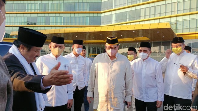 Sementara itu, sekira pukul 06.45 WIB, Ketua Umum DPP Partai Golkar Airlangga Hartato terlihat tiba di lokasi. Terlihat dia mengenakan koko berwarna cream.
