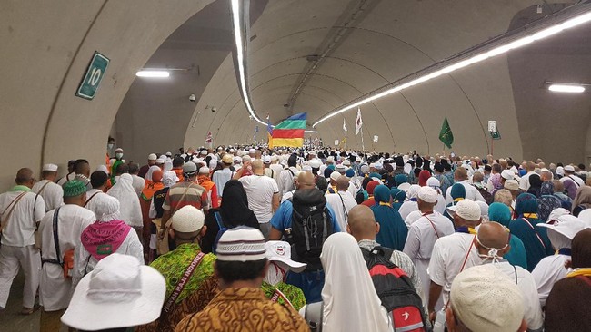 Terowongan Mina, tepatnya di terowongan atas menuju jalur atas Jamarat tiga atau lantai tiga, sempat mengalami mati lampu. Jemaah haji diminta tidak panik.