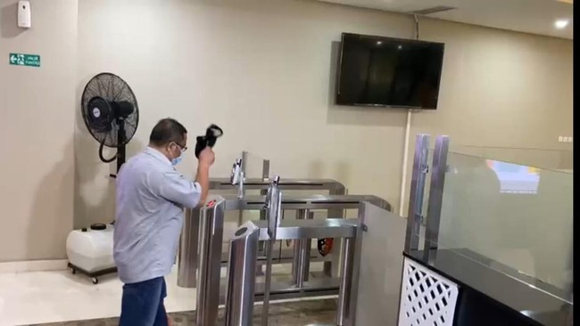 Pantauan detikcom, pukul 12.35 WIB, Senin (11/7/2022), Ibnu terlihat mengenakan kemeja warna biru muda garis-garis. Dia terlihat mengenakan topi hitam dan masker biru.
