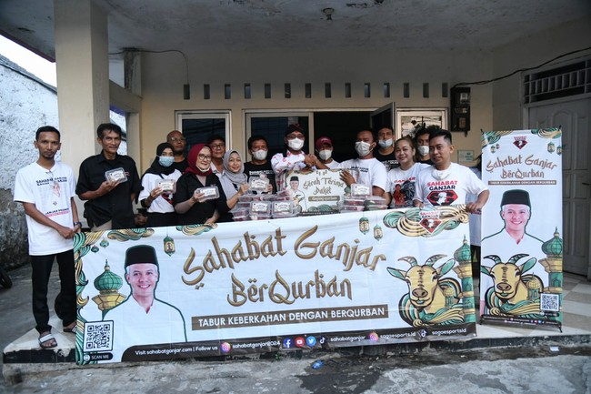 Dalam rangka memperingati Hari Raya Idul Adha 1442 Hijriah, relawan Sahabat Ganjar membagikan potongan daging hewan kurban ke tiga lokasi. Pembagian hewan kurban dilakukan di Jakarta, Depok, dan Bekasi.