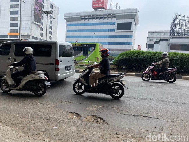 Titik-titik jalan berlubang itu di antaranya terletak di depan gedung Korps Lalu Lintas Polri, di depan SPBU Shell, di jalan seberang gedung Indomobil, serta di jalan menuju lampu merah Jl Jenderal Gatot Subroto.