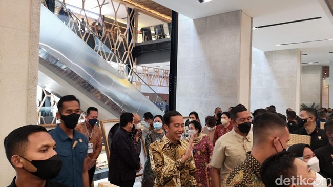 Jokowi tampak berbincang dengan Erick. Jokowi kemudian berkeliling, melihat barang yang dijajakan di mal tersebut. Bahkan Jokowi sempat memasuki salah satu toko pakaian.
