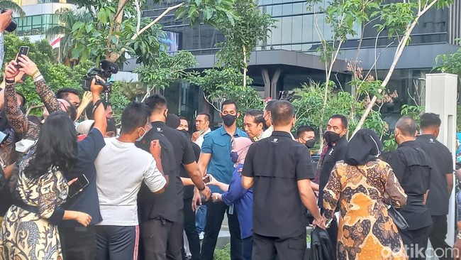 Pantauan detikcom di gedung Sarinah, Kamis (14/7/2022), pukul 17.01 WIB, Jokowi dan rombongan tampak keluar dari area acara transformasi Sarinah. Sebelum pergi, keriuhan sempat terjadi di mal tersebut.