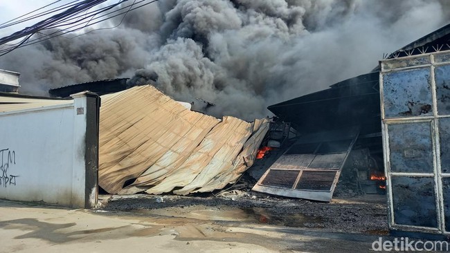 Pantauan detikcom di lokasi, Jumat (15/7/2022) pukul 15.29 WIB, api masih menyala dan asap masih mengepul ke udara. Pihak damkar masih berupaya memadamkan api dan kondisi lalu lintas agak sedikit terhambat.