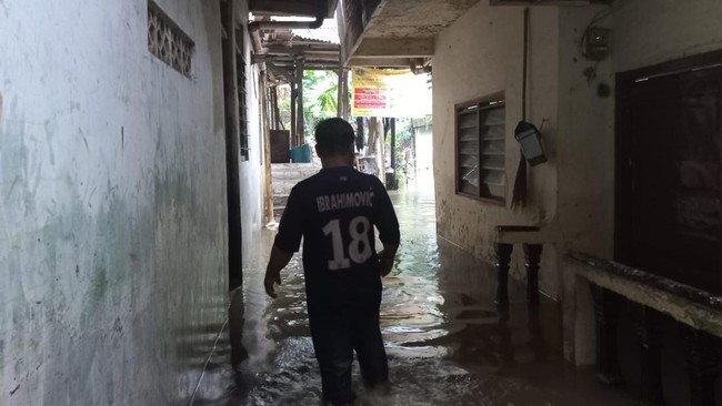 Pantauan detikcom di lokasi pukul 09.48 WIB, Sabtu (16/7/2022), tampak banjir merendam area perumahan warga. Warga terlihat berupaya mengeluarkan air dari dalam rumah mereka.