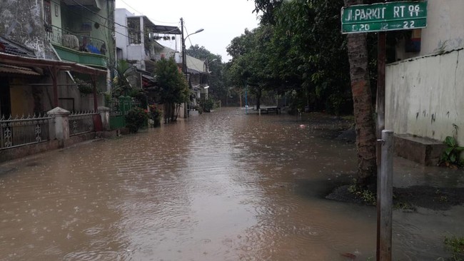 Banjir terjadi di 11 lokasi di Kota Bekasi, Jawa Barat (Jabar). Ketinggian air di sejumlah lokasi mencapai 1 meter.