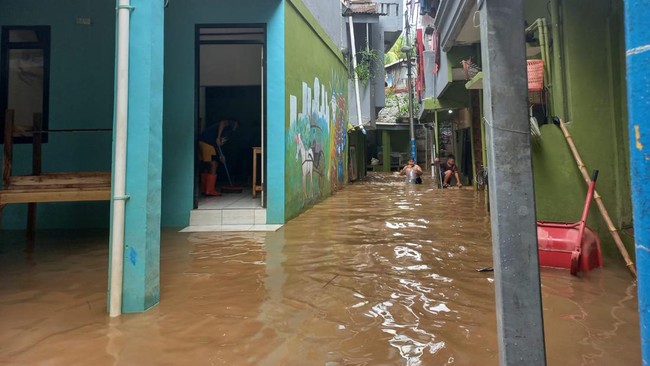 Pantauan detikcom di lokasi, Sabtu (16/7/2022) pukul 12.40 WIB, air masih nampak memasuki rumah warga. Ketinggian air sekitar 50 hingga 60 cm.