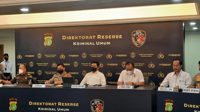 Kapolda Metro Jaya Irjen Fadil Imran memimpin langsung konferensi pers yang digelar di gedung Ditreskrimum Polda Metro Jaya. Menteri ATR/BPN Hadi Tjahjanto pun turut hadir di lokasi.
