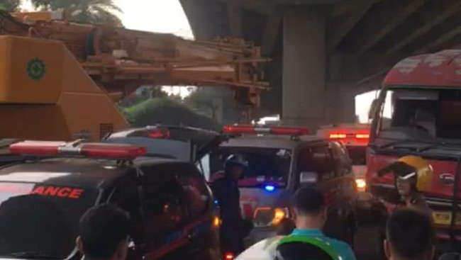 Kecelakaan melibatkan truk tangki Pertamina terjadi di Jalan Transyogi, Cibubur, Kota Bekasi. Kecelakaan itu diduga rem truk blong.