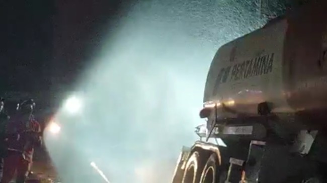 Pantauan detikcom di lokasi kejadian, Senin (18/7/2022), petugas gabungan mulai mengevakuasi sejak pukul 22.25 WIB. Awalnya, petugas membersihkan bagian bawah truk Pertamina.