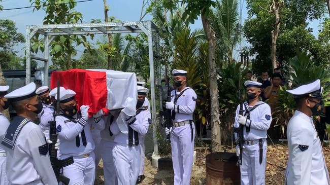Pantauan detikcom di lokasi, Selasa (19/7/2022) jenazah keduanya tiba di lokasi pukul 13.15 WIB dengan menggunakan mobil jenazah bertuliskan TNI AL. Sejumlah peziarah terlihat sudah memenuhi lokasi pemakaman sebelum jenazah tiba.