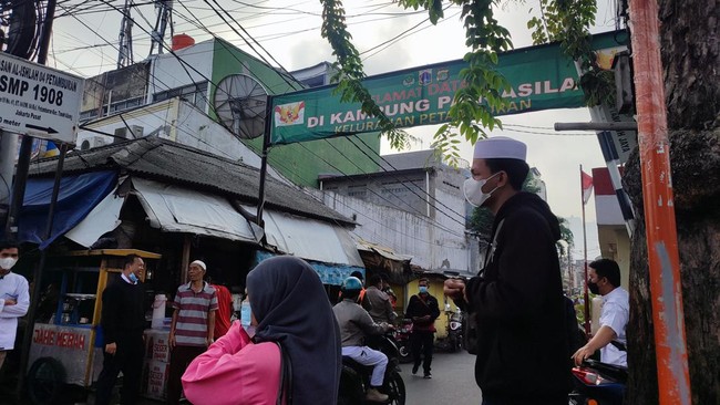 Pantauan di lokasi, Rabu (20/7/2022), pukul 08.30 WIB, terlihat sejumlah orang yang mengenakan pakaian putih-putih di Jalan Petamburan III. Tampak petugas Satpol PP dan Babinsa berjaga di depan gang Jalan Petamburan III.