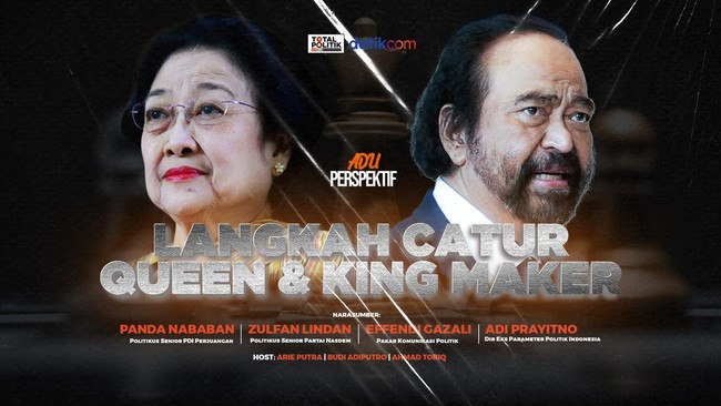 Lalu bagaimana membaca langkah queen & king maker dalam menyusun langkah catur? Seperti apa peta politik dan koalisi nanti? Adu Perspektif malam ini mengangkat topik 'Langkah Catur Queen & King Maker'. Saksikan diskusi bersama Panda Nababan (politikus senior PDI Perjuangan), Zulfan Lindan (politikus senior Partai NasDem), Effendi Gazali (pakar komunikasi politik), Andi Mallarangeng (Sekretaris Majelis Tinggi Partai Demokrat), dan Adi Prayitno (Direktur Eksekutif Parameter Politik Indonesia), Rabu, 20 Juli 2022 pukul 19.30 WIB. Acara disiarkan secara langsung dari detikcom.