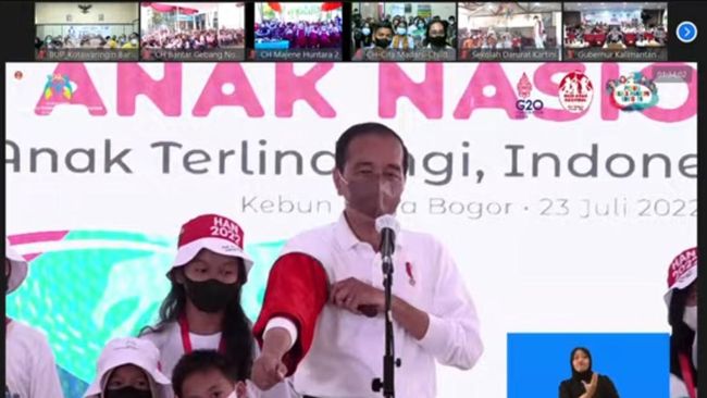 "Saya ingin menyampaikan selamat Hari Anak Nasional pada pagi hari ini, dan saya senang melihat anak-anak ceria seperti ini dengan kreativitas yang bermacam-macam dengan menunjukkan keaktifannya. Saya kira itulah dunia anak-anak," ucap Jokowi.