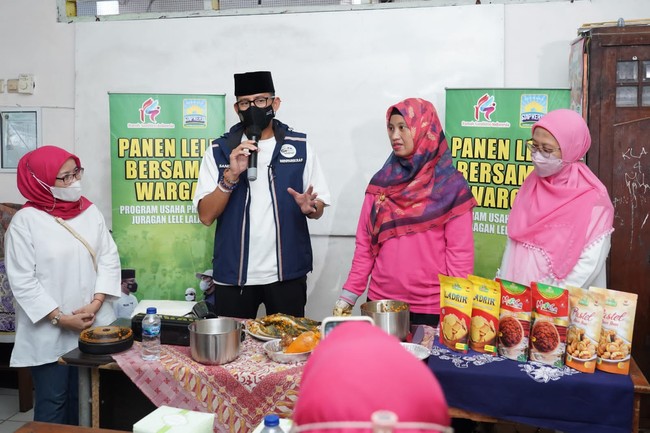 Sandiaga juga memberikan sejumlah bantuan yang memanfaatkan lele sebagai bisnis usaha, di antaranya vakum plastik, kompor gas, etalase, blender, hingga penggorengan. Sandiaga sebelumnya juga menyerahkan bantuan berupa bibit lele hingga sayuran. Adapun jumlah yang diberikan sebanyak 200 ember dan hingga 4.000 bibit lele.