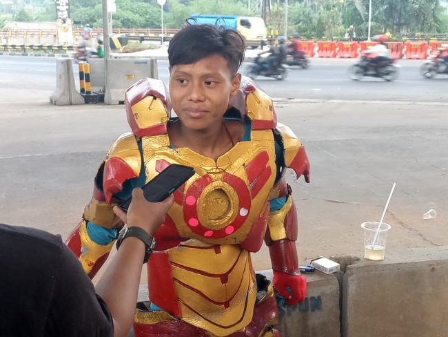 Dia mengganti kostum Teletubbies dengan kostum Iron Man nan gagah. Kostum itu dia beli dari saudaranya dengan harga Rp 1,5 juta.