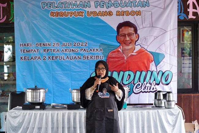 Kelompok pendukung Sandiaga Uno, SandiUno Fans Club Kelapa Dua Kepulauan Seribu menggelar pelatihan pembuatan kerupuk udang rebon di Pulau Kelapa Dua, Kelurahan Pulau Kelapa, Kabupaten Administrasi, DKI Jakarta. Kegiatan ini bertujuan untuk membantu masyarakat mendapatkan peluang menambah penghasilan keluarga.