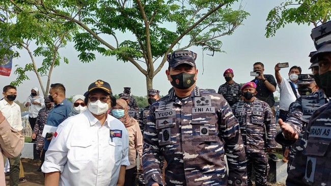 Menteri Lingkungan Hidup dan Kehutanan (LHK) Siti Nurbaya serta Kepala Staf TNI Angkatan Laut (KSAL) Laksamana TNI Yudo Margono tiba di Pantai Tanjung Pasir, Teluknaga, Kabupaten Tangerang. Keduanya datang untuk menanam mangrove di bibir pantai.