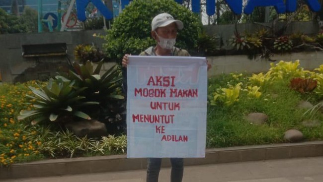 Aksi mogok makan ini dilakukan Heriyanto seorang diri. Herianto mengaku sudah dua hari melakukan aksi mogok makan di depan Kemenaker RI.