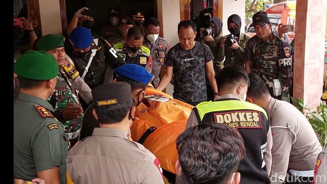 Jenazah Kopda Muslimin telah dibawa dari rumah orang tuanya pada sekitar pukul 11.30 WIB tadi. Jasad Kopda Muslimin diletakkan di dalam kantong jenazah warna oranye dan dibawa dengan ambulans Polres Kendal.