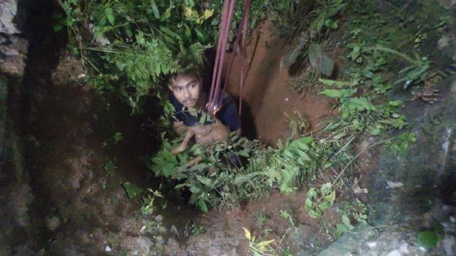 "Evakuasi cukup berjalan sulit, karena anjing posisinya di bawah, terjepit batu beton dan kayu. Tapi kemudian tim turun ke lubang sumur dan anjing berhasil dievakuasi. Proses evakuasi sekitar 3 jam, hidup, kondisi anjing hidup saat dievakuasi," kata Asan.