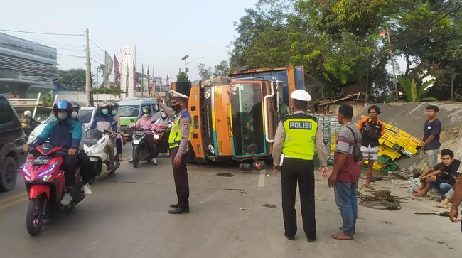 Kasubnit Laka Lantas Polresta Tangerang Ipda Adi Sulpaturohman mengatakan truk tersebut terbalik pagi tadi, Jumat (29/7/2022). Truk Fuso bernopol B-9770-TYT tersebut dikendarai Ahmad Fotoni (49), warga Kabupaten Serang.