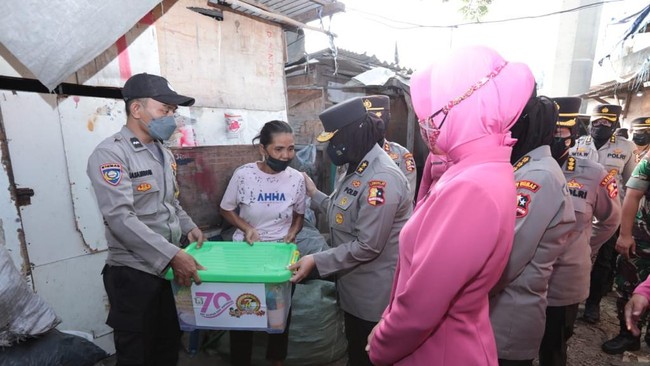 Polwan menggelar kegiatan bakti sosial (baksos) di lima titik di wilayah Jakarta Utara. Acara ini merupakan rangkaian dalam menyambut hari jadi Polwan RI ke-74 pada 1 September 2022.