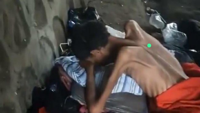 Dia terlihat tertidur di antara tumpukan sampah. Seorang pria perekam video lalu mencoba membangunkannya.