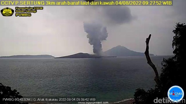 "Terjadi erupsi Gunung Anak Krakatau pada hari Kamis, 04 Agustus 2022, pukul 09:26 WIB dengan tinggi kolom abu teramati ± 1500 m di atas puncak (± 1657 m di atas permukaan laut)," tulis laporan Badan Geologi seperti dikutip, Kamis (4/8/2022).