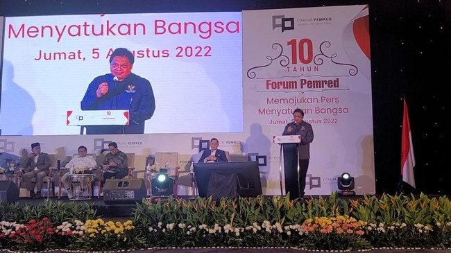 Dalam acara perayaan 10 tahun Forum Pemred, Airlangga mengatakan berbagai upaya dan langkah yang telah, sedang dan akan terus dilakukan pemerintah agar pembangunan tetap berjalan dan ekonomi tumbuh.
