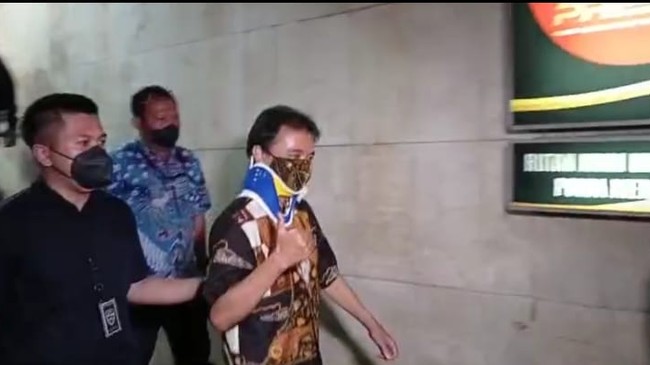 Roy Suryo dipindahkan ke rutan pada pukul 21.34 WIB. Dia mengenakan kemeja batik dan masker.