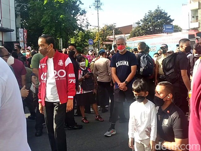 "Ketemu di jalan. Aku lari sampe gembrobyos (berkeringat). Ra mudeng (nggak tahu Pak Jokowi mau ke CFD)," kata Ganjar setelah menemani Jokowi di Ngarsopuro, Minggu (7/8/2022), seperti dilansir detikJateng.