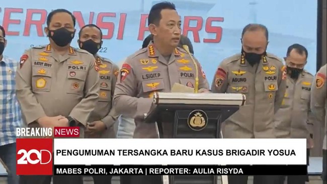 Kapolri, dalam kesempatan ini, mengumumkan Ferdy Sambo sebagai tersangka pembunuhan berencana terhadap Brigadir J. Kapolri mengatakan Timsus mendalami apakah Irjen Ferdy Sambo ikut menembak Brigadir J.