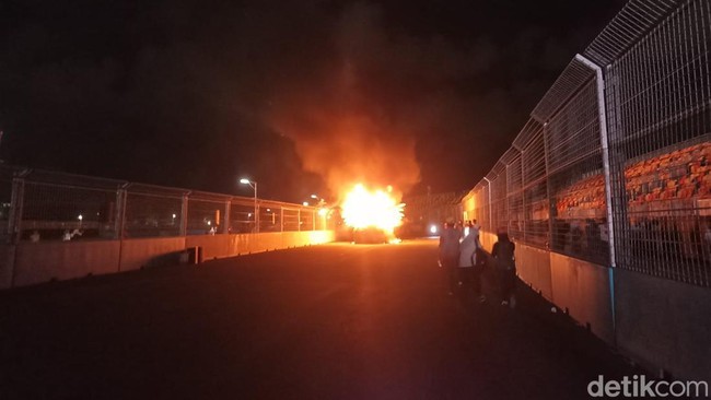 Mobil itu sempat memunculkan kembang api sebagai tanda penutup acara. Tak lama setelah itu, api mulai menjalar saat mobil hias berjalan menjauhi area panggung.