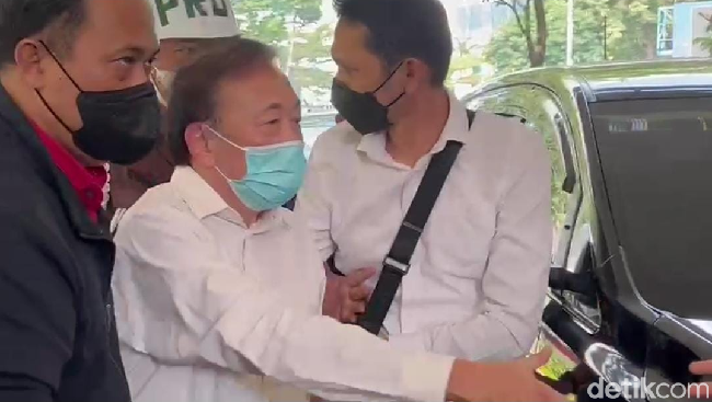 Surya Darmadi telah tiba di gedung Jampidsus sekitar pukul 13.55 WIB. Dia tampak mengenakan kemeja putih panjang dan bermasker.