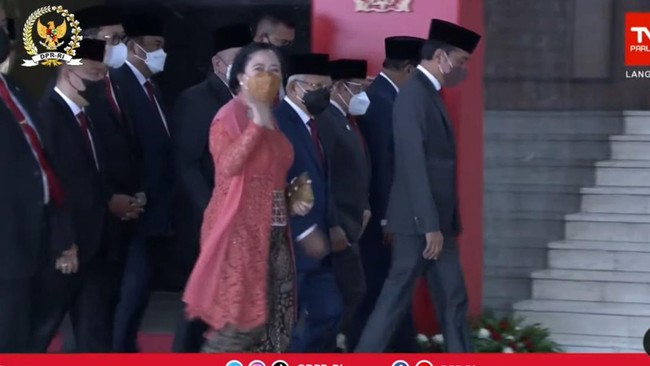 Pantauan detikcom di lokasi, Selasa (16/8/2022) Jokowi tiba pukul 13.28 WIB. Tiba di Gedung Kura-kura, Jokowi disambut Ketua DPR Puan Maharani serta para wakil pimpinan, yakni Sufmi Dasco Ahmad, Rachmat Gobel, Lodewijk Paulus, hingga Muhaimin Iskandar. Jokowi juga disambut Wapres Ma'ruf Amin, yang tiba lebih dulu di lokasi.