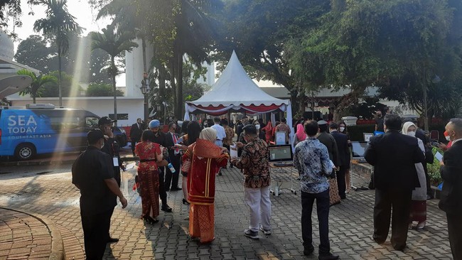 detikcom memantau suasana di kompleks Istana Kepresidenan, Jakarta Pusat, Rabu (17/8/2022). Mereka datang setelah mendaftar lewat situs yang diumumkan Setneg sebelumnya.