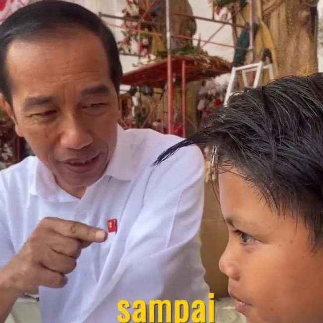 Jokowi lalu duduk bersama Farel dan menanyakan soal sekolah. Jokowi menitip pesan agar Farel tidak lupa sekolah meski sudah terkenal bernyanyi.