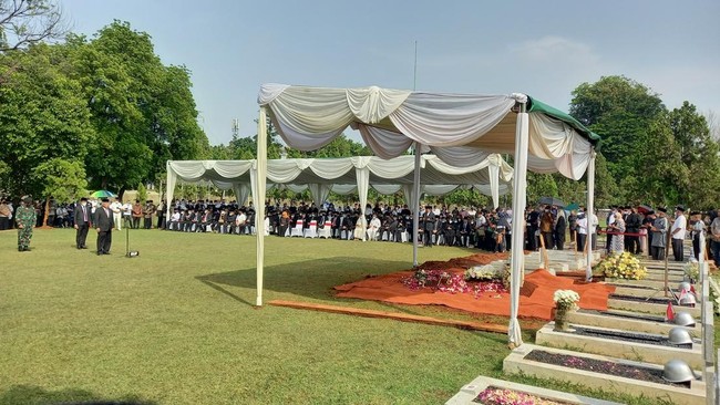 Pantauan detikcom di lokasi, Minggu (21/8/2022) jenazah sudah dimakamkan di TMP Kalibata. Tampak pemakaman dihadiri oleh para sanak keluarga dan kerabat.