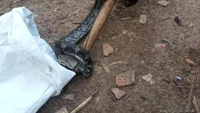 "Jadi pas pertama dilihat ular itu sudah di dalam kandang ternak itik punya warga di situ, sedang mangsa itik. Kemudian sama warga beramai-ramai, ular ditangkap dan diamankan," kata Ridwan, secara terpisah.