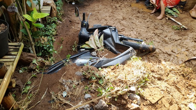 Di halaman dan di dalam ruangan rumah warga, nampak sejumlah motor tertimbun lumpur hingga menutupi sebagian mesin. Beberapa motor bahkan tergeletak di halaman rumah karena diduga tidak sempat diselamatkan pemiliknya.