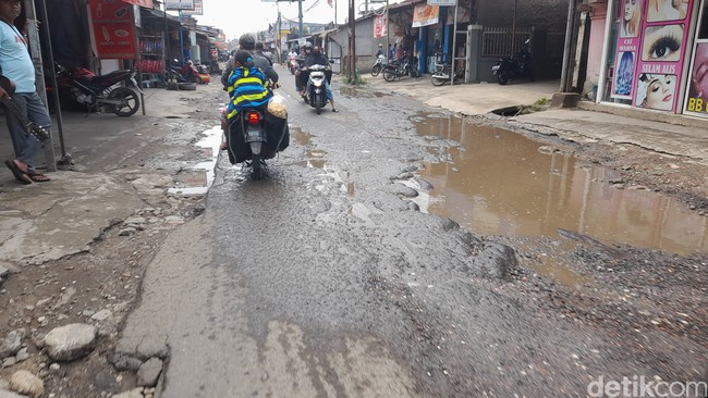 Pantauan detikcom pada pekan lalu, Selasa (16/8), jalan rusak juga masih nampak di beberapa titik. Di antaranya di depan pertokoan sekitar RS Citama. Di titik ini, jalan rusak tampak terhampar sepanjang sekitar 3 meter. Lubang-lubang jalanan tampak diisi dengan batu.