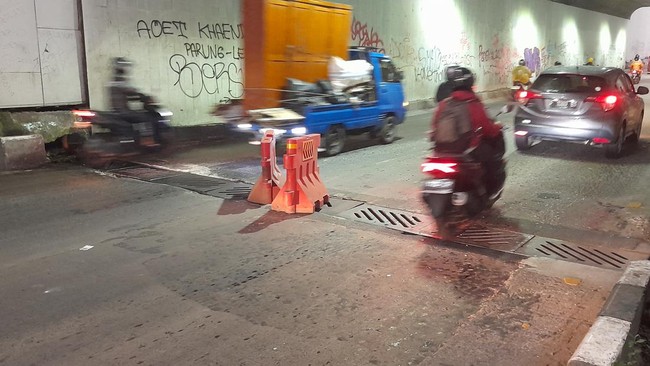 Pantauan detikcom pada Jumat (26/8/2023) di terowongan underpass Jalan Raya Sholis, Kota Bogor, tampak kondisi panel besi penutup saluran air masih seperti hari sebelumnya dan belum ada perbaikan.