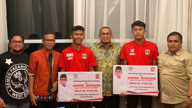 Anggota DPR RI asal Sumatera Barat (Sumbar) Andre Rosiade memberikan apresiasi kepada dua remaja Minang yang mengharumkan nama Indonesia dengan menjuarai Piala AFF U-16 Tahun 2022. Mereka adalah striker Nabil Asyura dan kiper Iqram Al Ghifari.