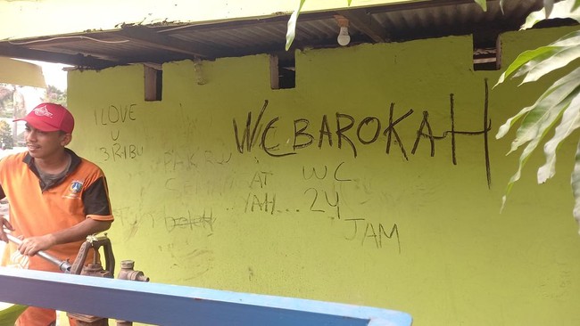 Seorang warga bernama Panji Arum Wibowo mengatakan tulisan 'barokah' pada dinding WC ditulis oleh warga setempat setelah viralnya warteg 'Barokah'.