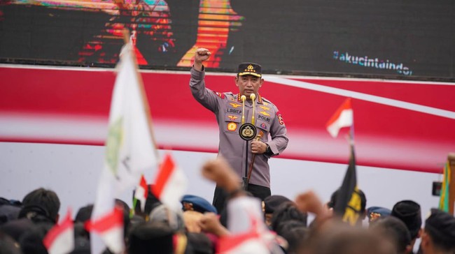 "Mari kita jaga semangat persatuan dan kesatuan. Negara Kesatuan Republik Indonesia (NKRI) adalah harga mati. Oleh karena itu, semangat ini harus terus kita jaga. Kita antar Indonesia menuju visi Indonesia Emas 2045, merdeka, merdeka, merdeka," kata Sigit dalam sambutannya.