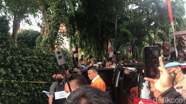 Rekonstruksi dugaan pembunuhan berencana Brigadir Nopriansyah Yosua Hutabarat (Brigadir J) dilakukan di rumah dinas Kompleks Polri Duren Tiga, Jakarta Selatan (Jaksel). Sebelum masuk ke rumah dinas, Irjen Ferdy Sambo sempat menjatuhkan senjata pistol yang dibawanya.