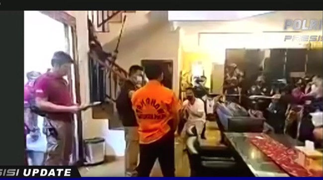 Tayangan reka ulang kemudian terputus. Polri TV menayangkan kembali suasana di rumah pribadi Sambo di Saguling, Jakarta Selatan.