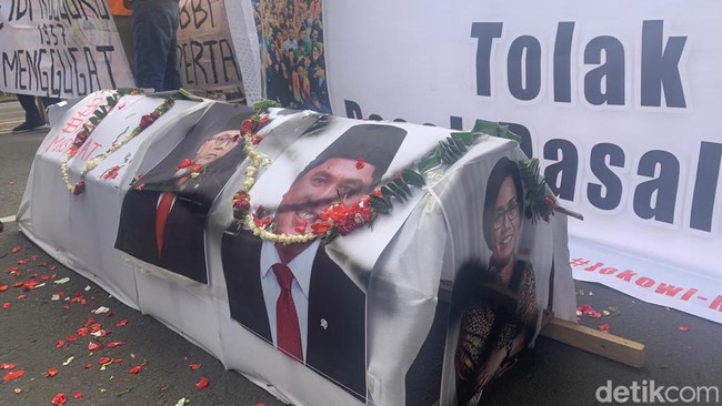 "Hari ini kami persembahkan keranda mayat untuk pemerintah," ujar salah satu orator.